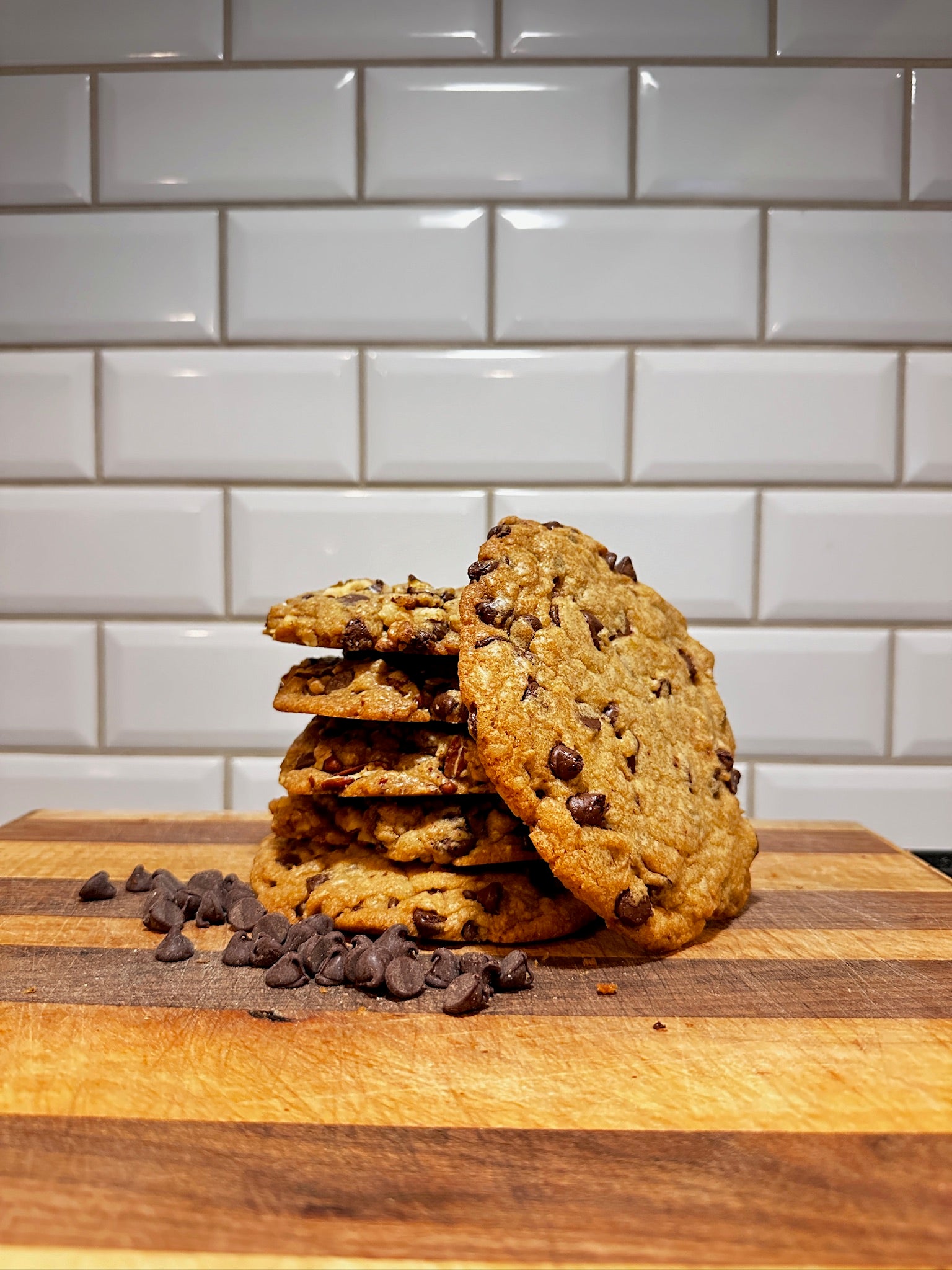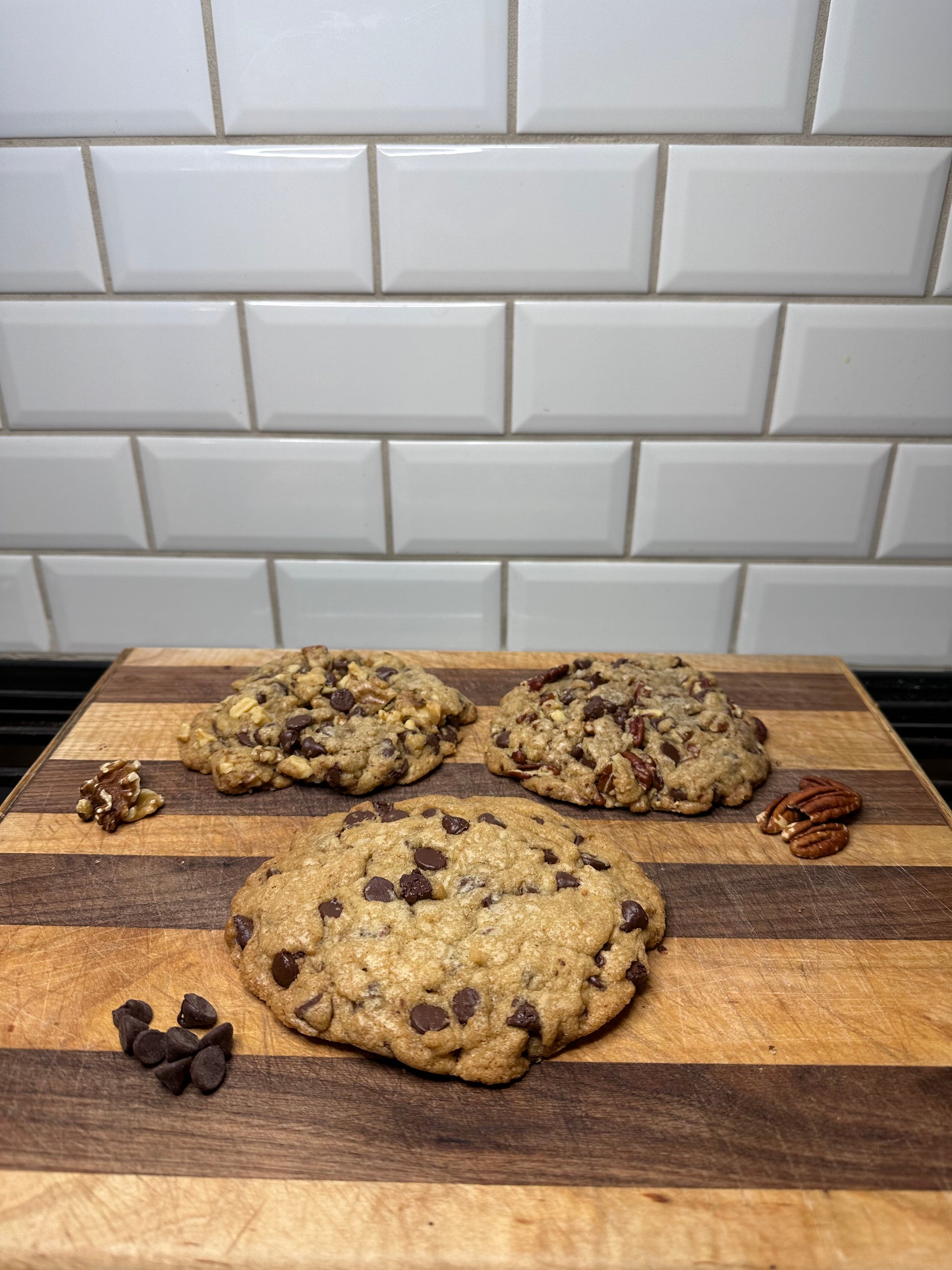 Indulge in these oversized cookies that will tantalize your taste buds. Whether you prefer them with or without nuts, you won't be disappointed with these delicious treats. Do yourself a favor and grab yourself a glass of milk!
